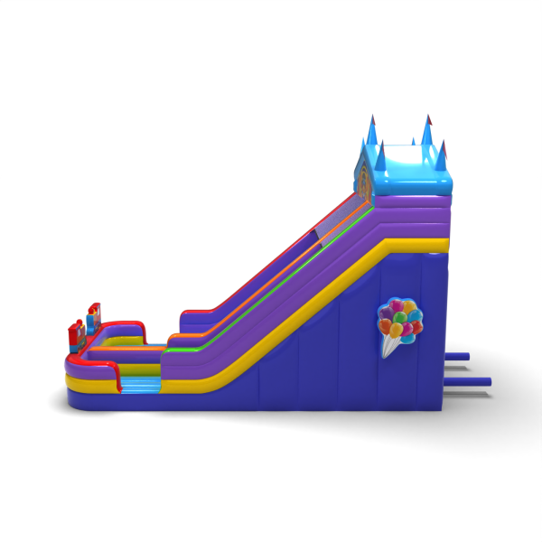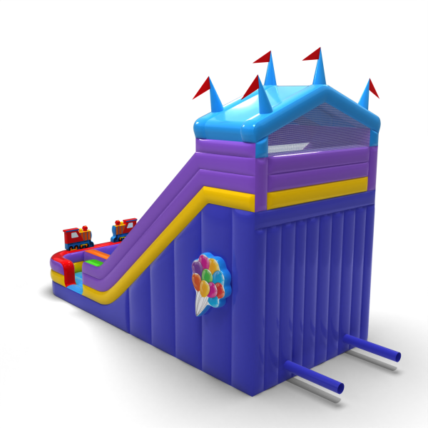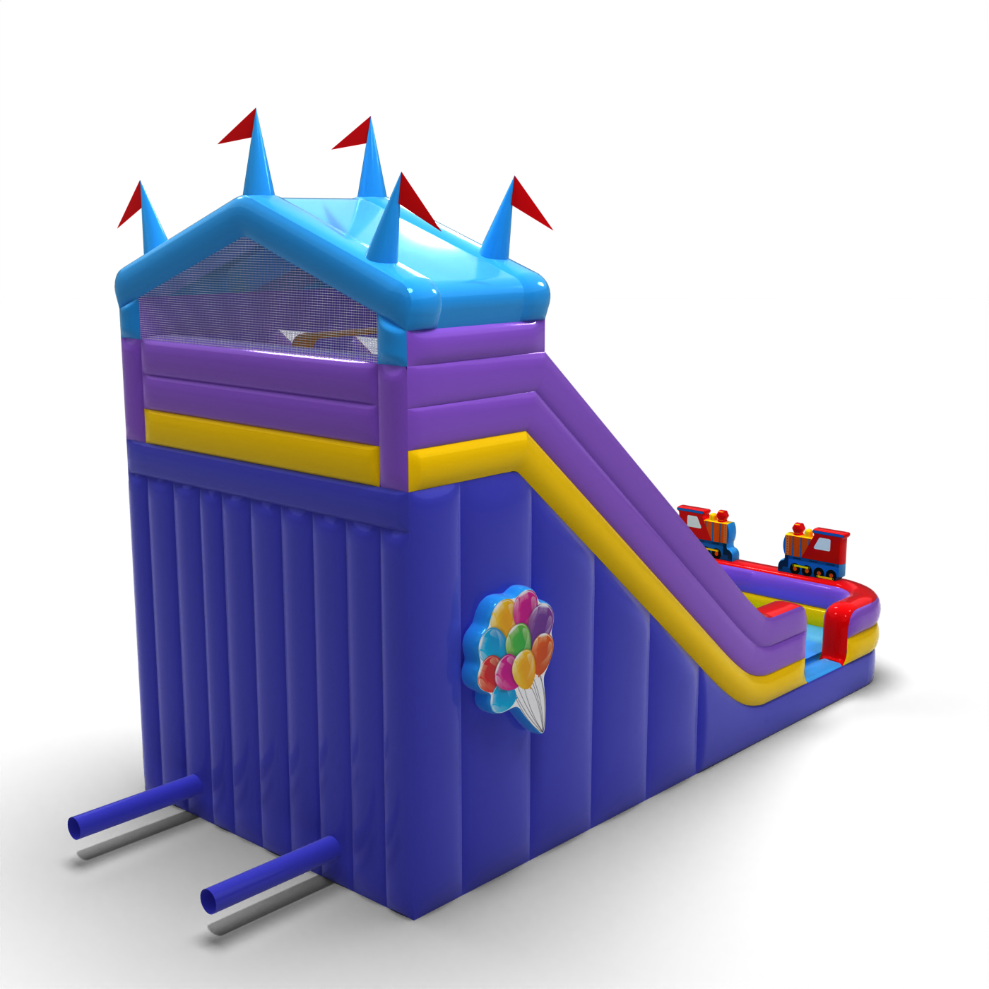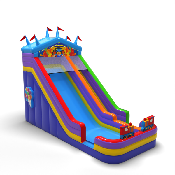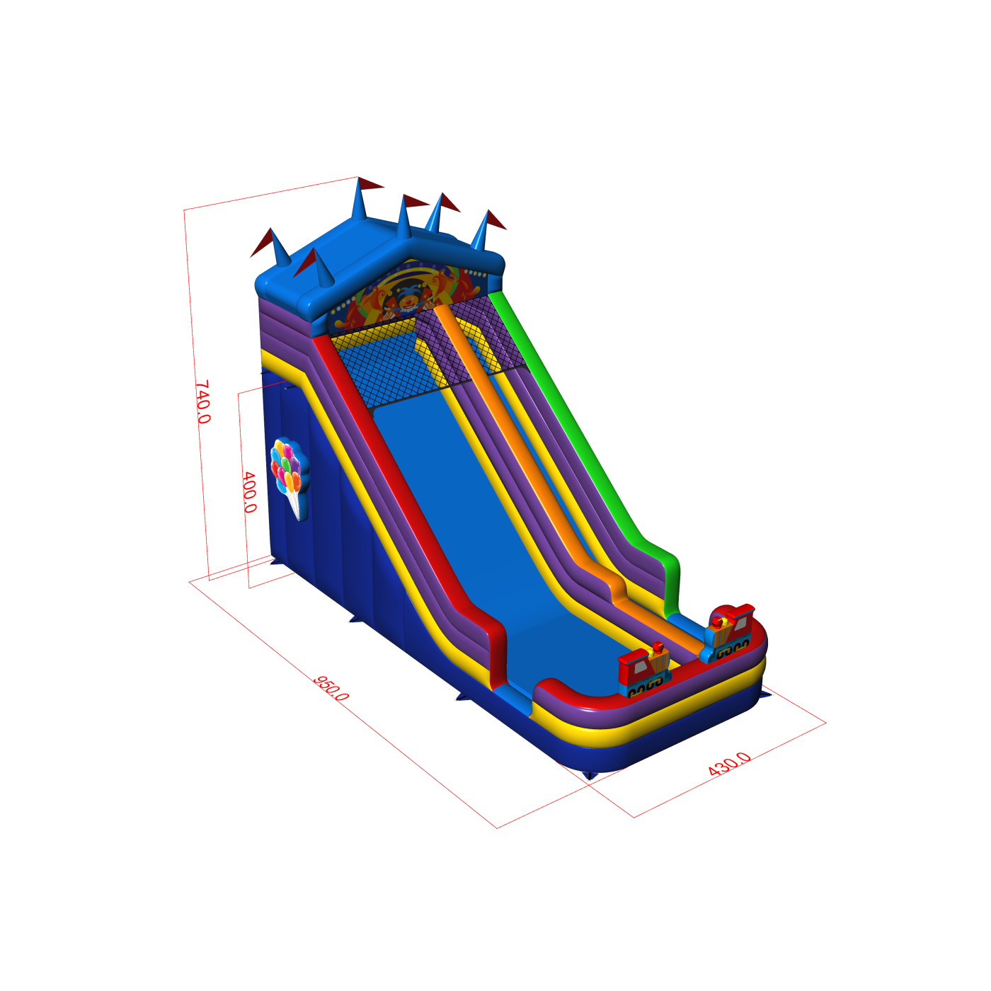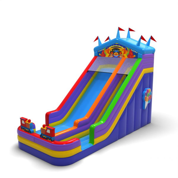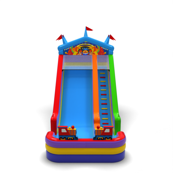 Η πολύχρωμη τσουλήθρα που έχει διαμορφωθεί σε σκηνή τσίρκου είναι μια ευέλικτη ατραξιόν εμπνευσμένη από το κλασικό λούνα παρκ. Τα φωτεινά χρώματα και το διακοσμητικό στέγαστρο κάνουν τη δομή να ξεχωρίζει σε κάθε εκδήλωση - από φεστιβάλ πόλης μέχρι οικογενειακά πικνίκ. Με το μεγάλο της ύψος και τη μεγάλη της τσουλήθρα, προσφέρει έντονη διασκέδαση όλη την ημέρα. Ιδανικό για διοργανωτές που αναζητούν ένα στιβαρό, εντυπωσιακό μοντέλο.