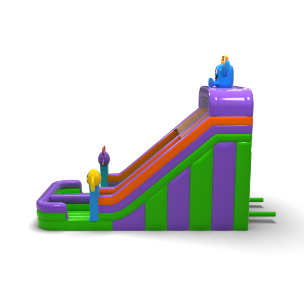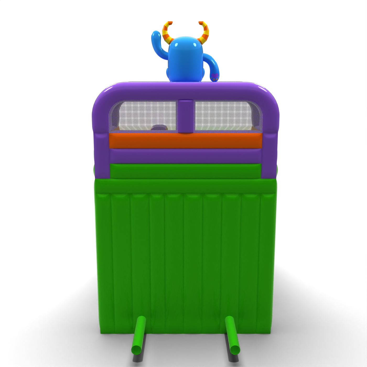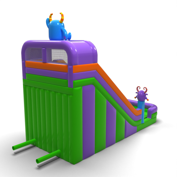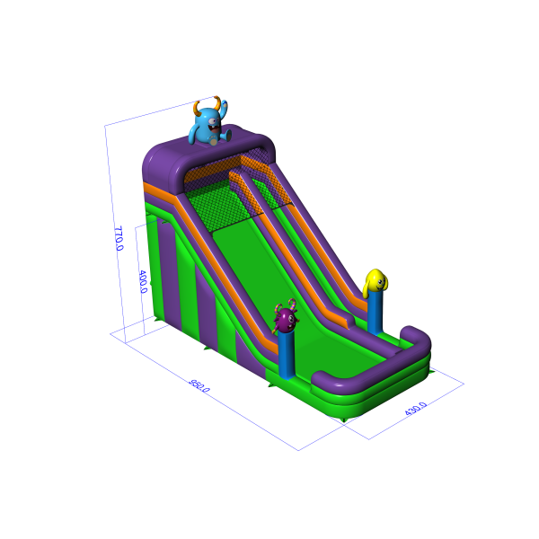 Μια τσουλήθρα με ένα παιχνιδιάρικο τέρας στην κορυφή και παραμυθένιες διακοσμήσεις είναι μια εξαιρετική επιλογή για τους μικρότερους συμμετέχοντες στην εκδήλωση. Τα έντονα χρώματα και οι χαρακτηριστικοί χαρακτήρες προσδίδουν ενέργεια και φιλική εμφάνιση στη δομή. Η μεγάλη επιφάνεια της τσουλήθρας επιτρέπει τη δυναμική διασκέδαση, ενώ το ουδέτερο θέμα ταιριάζει σε πολλές περιστάσεις - από φεστιβάλ έως εμψυχωτικές εκδηλώσεις σε εμπορικά κέντρα.