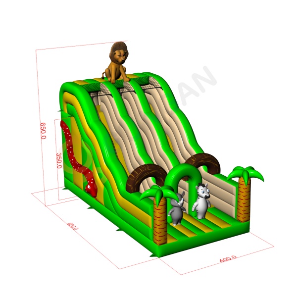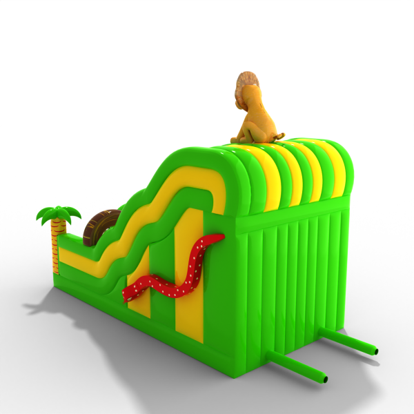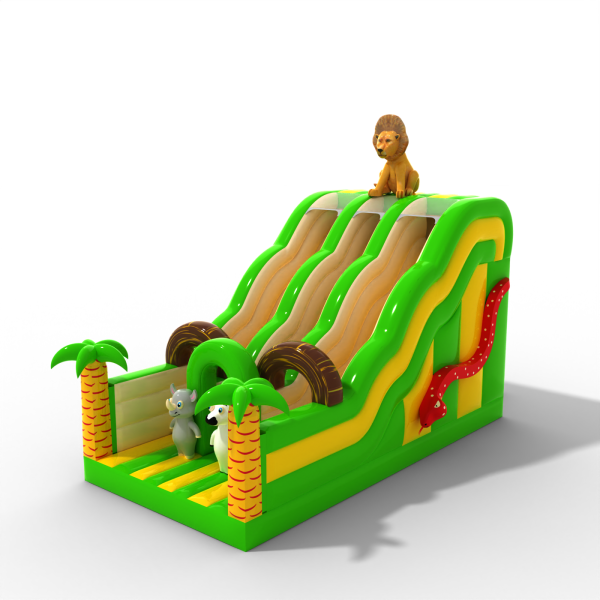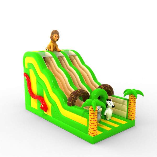 Το Διπλή ανοιχτή διαφάνεια με μοτίβο ζούγκλας είναι ένα φανταστικό φουσκωτό για παιδιά και εφήβους. Συνδυάζεται τέλεια με τις υπόλοιπες ατραξιόν μας σε διάφορα θέματα. Το Διπλή ανοιχτή διαφάνεια με μοτίβο ζούγκλας τραβά αμέσως την προσοχή των παιδιών μόλις εμφανιστεί στον ορίζοντα. Οι μικροί επισκέπτες των εκδηλώσεων λατρεύουν το ξέγνοιαστο παιχνίδι – γι’ αυτό αυτή η τσουλήθρα μπορεί να γίνει μία από τις πιο δημοφιλείς ατραξιόν στη συλλογή σου. Τα φουσκωτά αυτής της κατηγορίας είναι εντυπωσιακά, γεμάτα διακοσμητικά και στοιχεία που προσκαλούν τα παιδιά σε ατέλειωτες ώρες παιχνιδιού στον καθαρό αέρα.