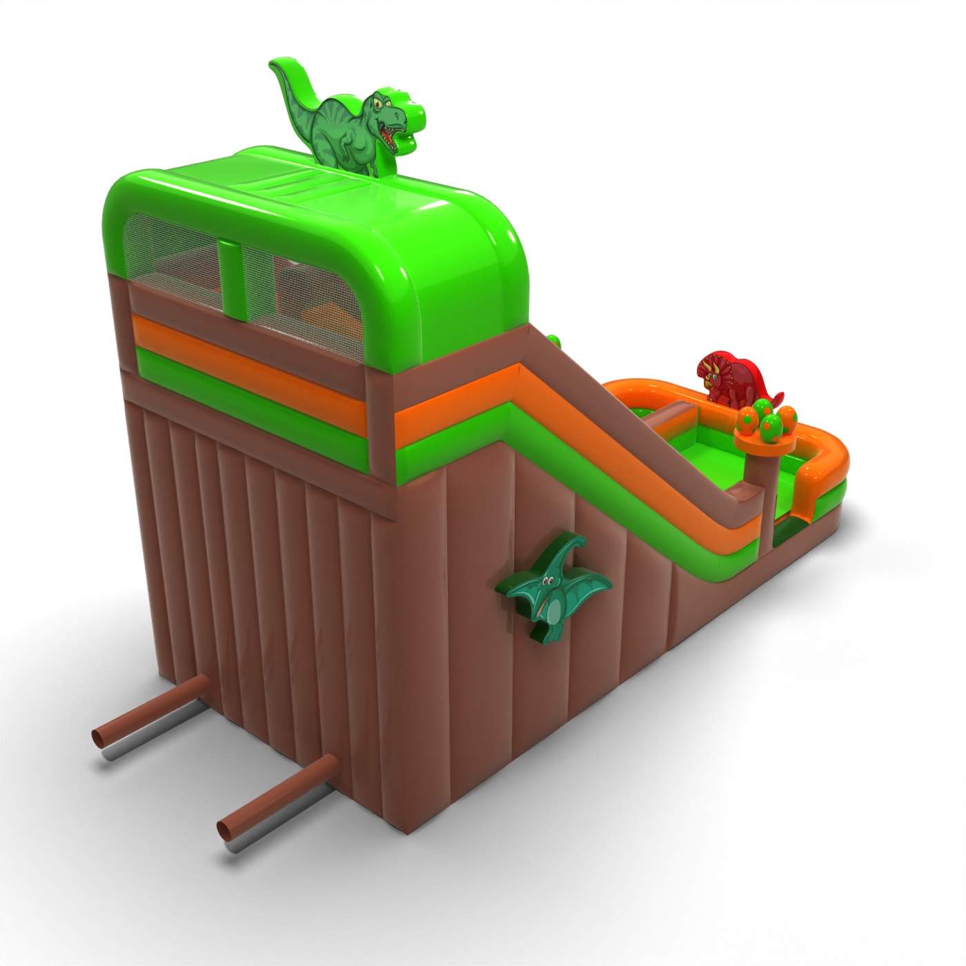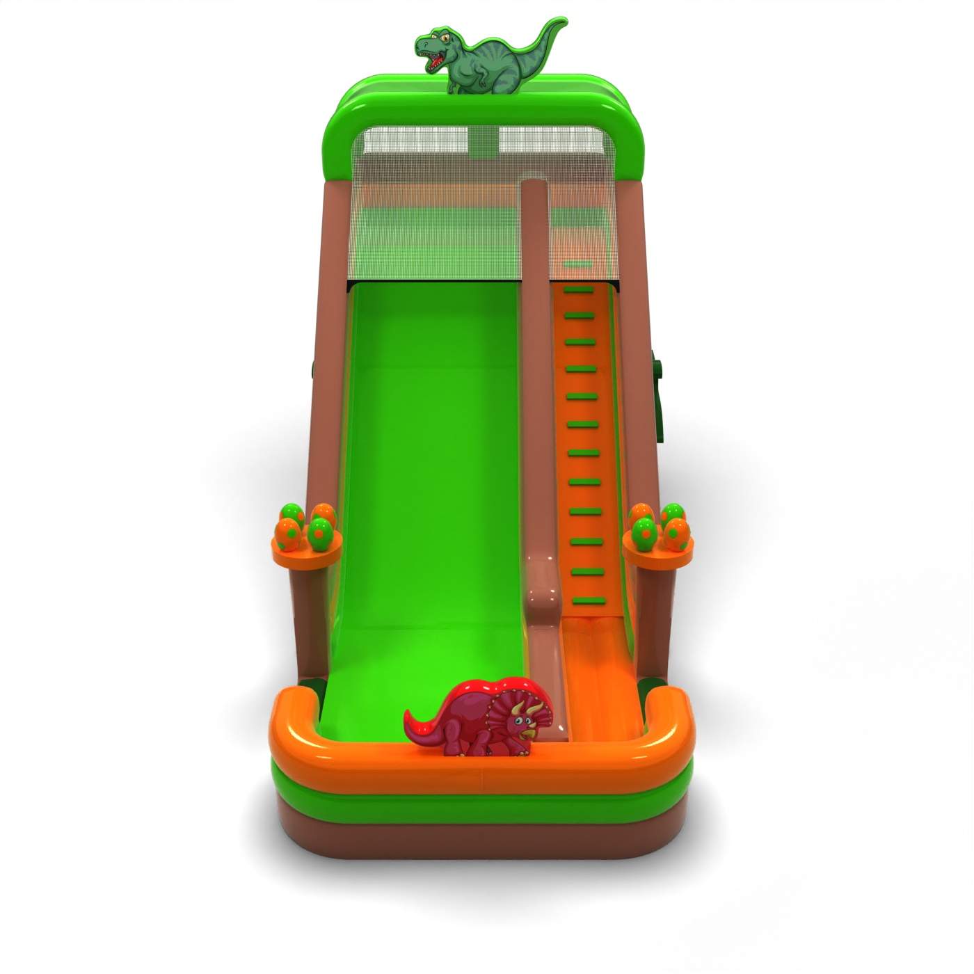 Το ψηλό, συμπαγές τετράγωνο σε ατμόσφαιρα δεινοσαύρου δημιουργεί ένα ισχυρό οπτικό αποτέλεσμα και προσελκύει τα παιδιά που διψούν για περιπέτεια κατευθείαν από τον προϊστορικό κόσμο. Η μεγάλη διαδρομή τσουλήθρας εξασφαλίζει ομαλό, δυναμικό παιχνίδι και παρατείνει σαφώς το χρόνο ανά τσουλήθρα. Η μεγεθυμένη μορφή κάνει την ατραξιόν να ξεχωρίζει στη ζώνη εμψύχωσης, διατηρώντας παράλληλα την απλότητα της λειτουργίας. Πρόκειται για μια σταθερή επιλογή για εταιρείες που επιθυμούν να συμπληρώσουν την προσφορά τους με μια μεγάλη αλλά ευέλικτη θεματική τσουλήθρα. Το μοντέλο θα λειτουργήσει καλά σε οικογενειακές εκδηλώσεις, πικνίκ και μεγαλύτερες υπαίθριες παραγωγές, όπου η ορατότητα και η σταθερή λειτουργία καθ' όλη τη διάρκεια της ημέρας είναι σημαντικές.