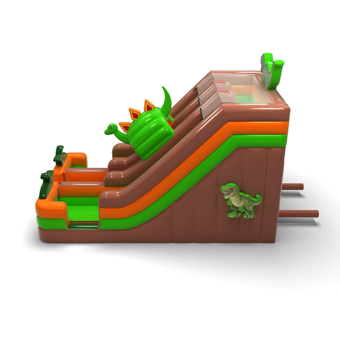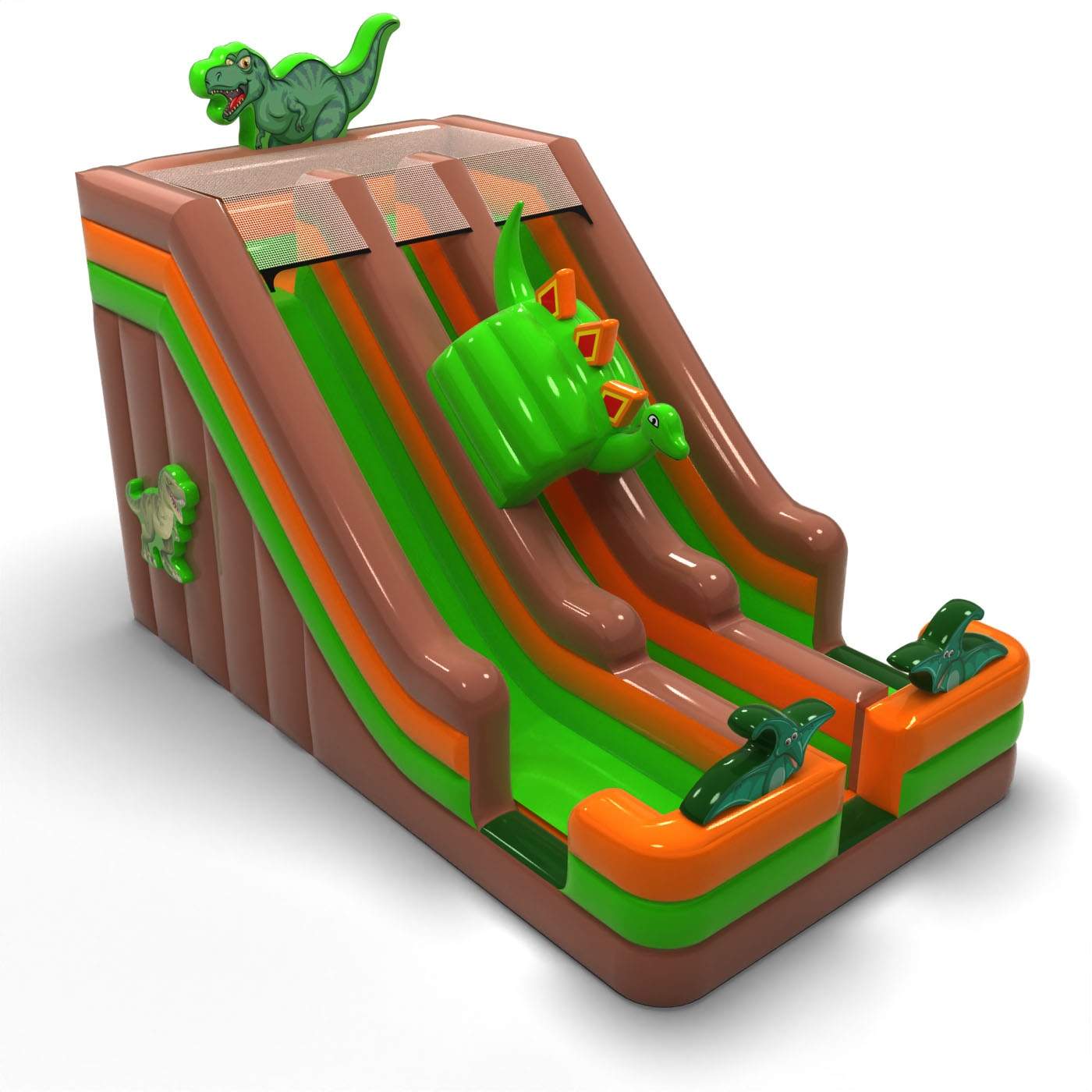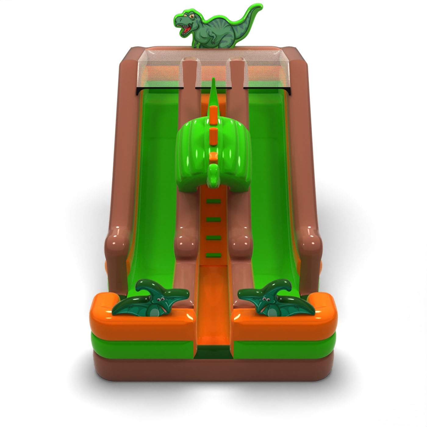 Το Διπλή τσουλήθρα με μοτίβο δεινοσαύρου είναι ένα φανταστικό φουσκωτό για παιδιά και εφήβους. Συνδυάζεται τέλεια με τις υπόλοιπες ατραξιόν μας σε διάφορα θέματα. Το Διπλή τσουλήθρα με μοτίβο δεινοσαύρου τραβά αμέσως την προσοχή των παιδιών μόλις εμφανιστεί στον ορίζοντα. Οι μικροί επισκέπτες των εκδηλώσεων λατρεύουν το ξέγνοιαστο παιχνίδι – γι’ αυτό αυτή η τσουλήθρα μπορεί να γίνει μία από τις πιο δημοφιλείς ατραξιόν στη συλλογή σου. Τα φουσκωτά αυτής της κατηγορίας είναι εντυπωσιακά, γεμάτα διακοσμητικά και στοιχεία που προσκαλούν τα παιδιά σε ατέλειωτες ώρες παιχνιδιού στον καθαρό αέρα.