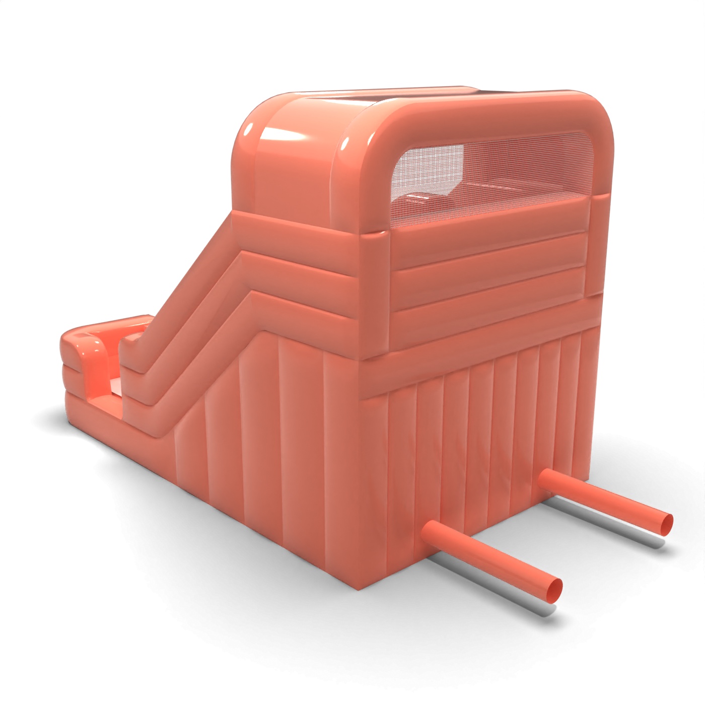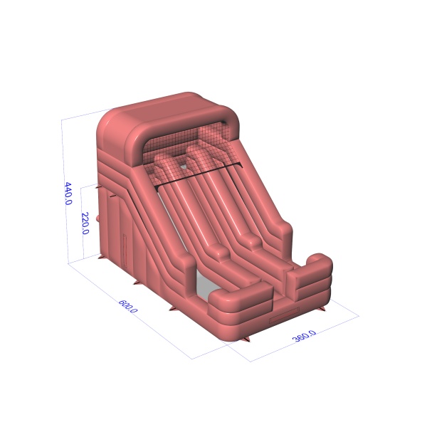 Η απαλή απόχρωση του βρώμικου ροζ δίνει σε αυτή τη διαφάνεια μια μοντέρνα και δομημένη εμφάνιση που ξεχωρίζει από τα κλασικά, έντονα σχέδια. Οι δύο παράλληλες διαδρομές επιτρέπουν το παιχνίδι να διεξάγεται με δυναμικό ρυθμό, κάτι που είναι σημαντικό όταν τα παιδιά είναι πιο κινητικά. Η σταθερή πλατφόρμα εκτόξευσης και η σαφώς οριοθετημένη περιοχή προσγείωσης προάγουν τις ασφαλείς και ομαλές διαδρομές. Αποτελεί επιλογή για εταιρείες ενοικίασης και διοργάνωσης εκδηλώσεων που καλύπτουν τόσο ιδιωτικές γιορτές όσο και μικρότερες εταιρικές εκδηλώσεις. Το μοντέλο θα λειτουργήσει καλά σε φεστιβάλ κτήματος, οικογενειακά πικνίκ και εκδηλώσεις σε ημιυπαίθριους χώρους.