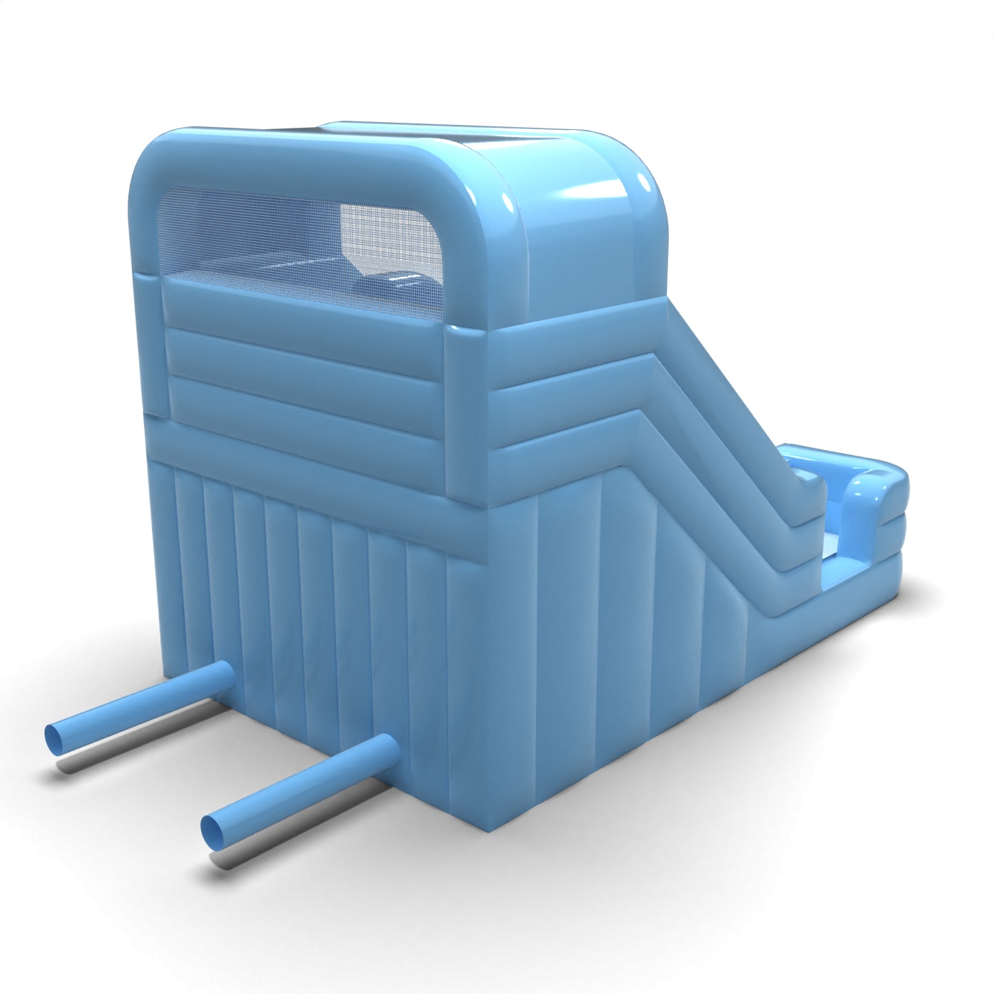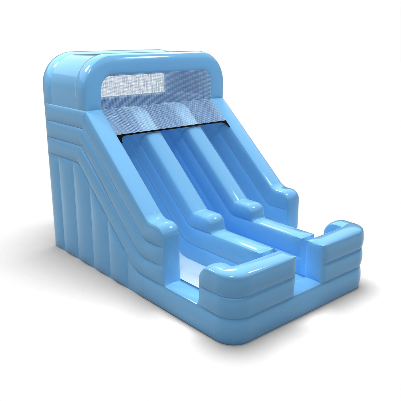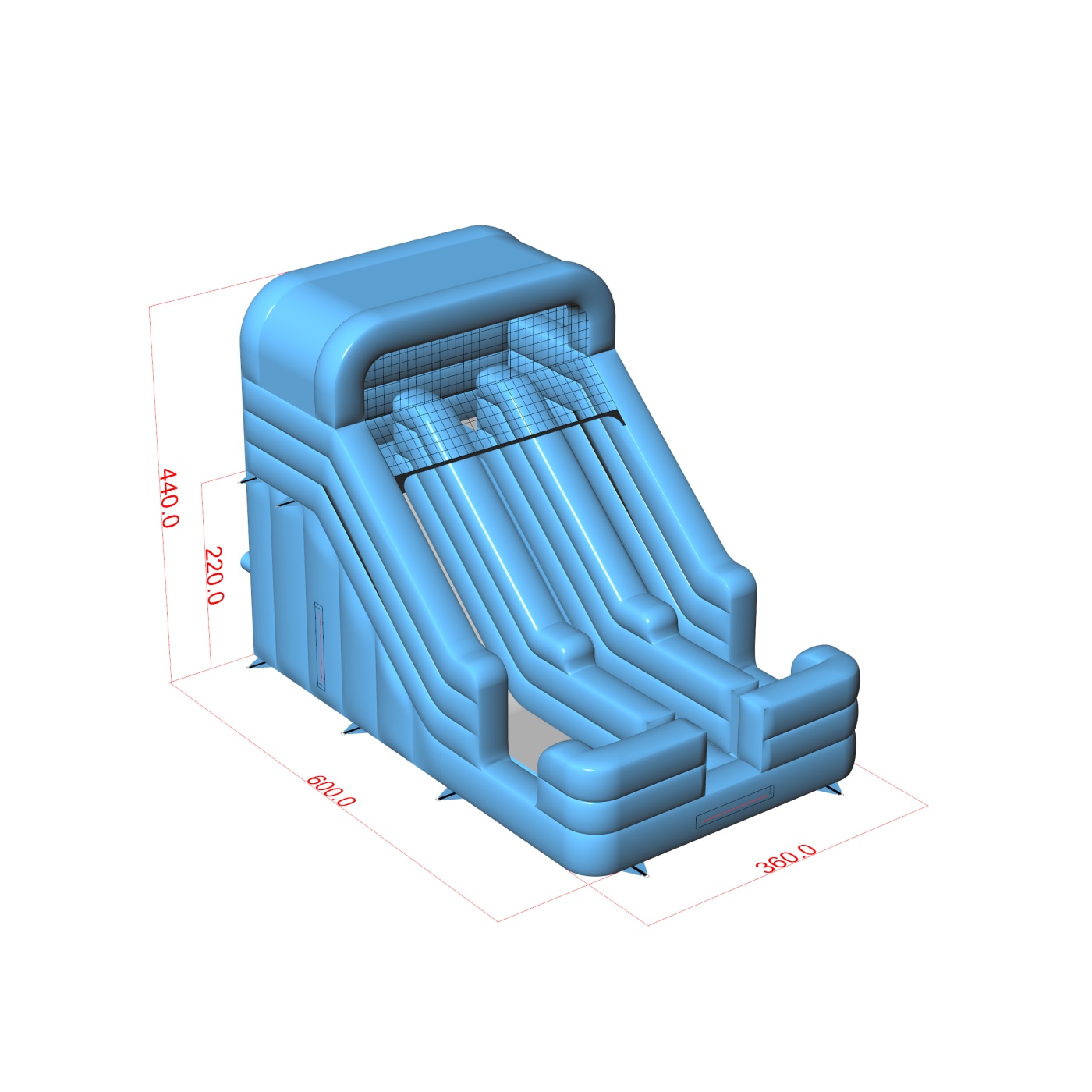 Το παστέλ μπλε αναδεικνύει τον φρέσκο και ευέλικτο χαρακτήρα αυτής της διπλής φωτογραφικής διαφάνειας, καθιστώντας την εύκολη την προσαρμογή της σε μια ποικιλία ιδεών εκδήλωσης. Οι παράλληλες τσουλήθρες επιτρέπουν το ταυτόχρονο παιχνίδι, γεγονός που αυξάνει τον ρυθμό εκτέλεσης και μειώνει τον χρόνο διακοπής στον χώρο των παιδιών. Ο συμπαγής σχεδιασμός με σαφώς οριοθετημένη πλατφόρμα εκτόξευσης επιτρέπει την αποτελεσματική διαχείριση της κίνησης των συμμετεχόντων. Αποτελεί επιλογή για εταιρείες εκδηλώσεων και εταιρείες ενοικίασης που λειτουργούν παιδικές ημέρες, εταιρικά πικνίκ και σχολικές υπαίθριες εκδηλώσεις. Το μοντέλο θα αποδείξει την αξία του οπουδήποτε απαιτείται μια ορατή, αλλά αισθητικά ουδέτερη ατραξιόν με καλή διακίνηση.